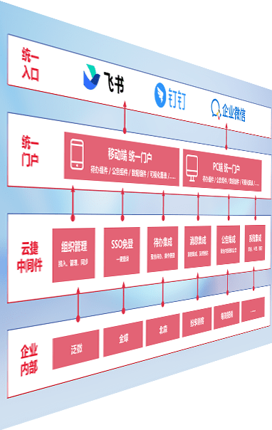 对协作平台提供支持服务,,支持企业应用与协作平台对接,,包含组织同步、、、消息集成、、、、待办集成等。。。。支持目前主流的协作平台:钉钉、、企微和飞书。。。